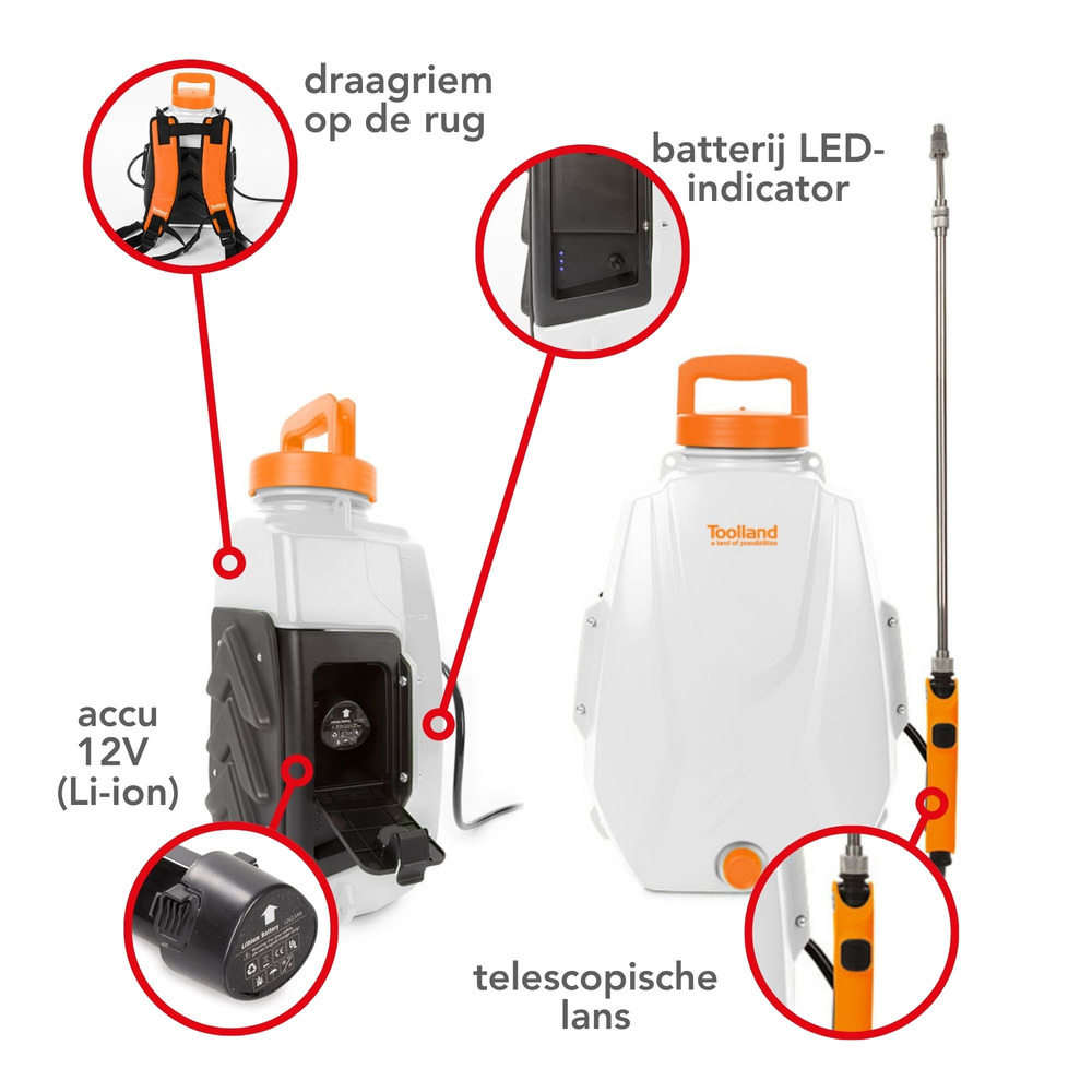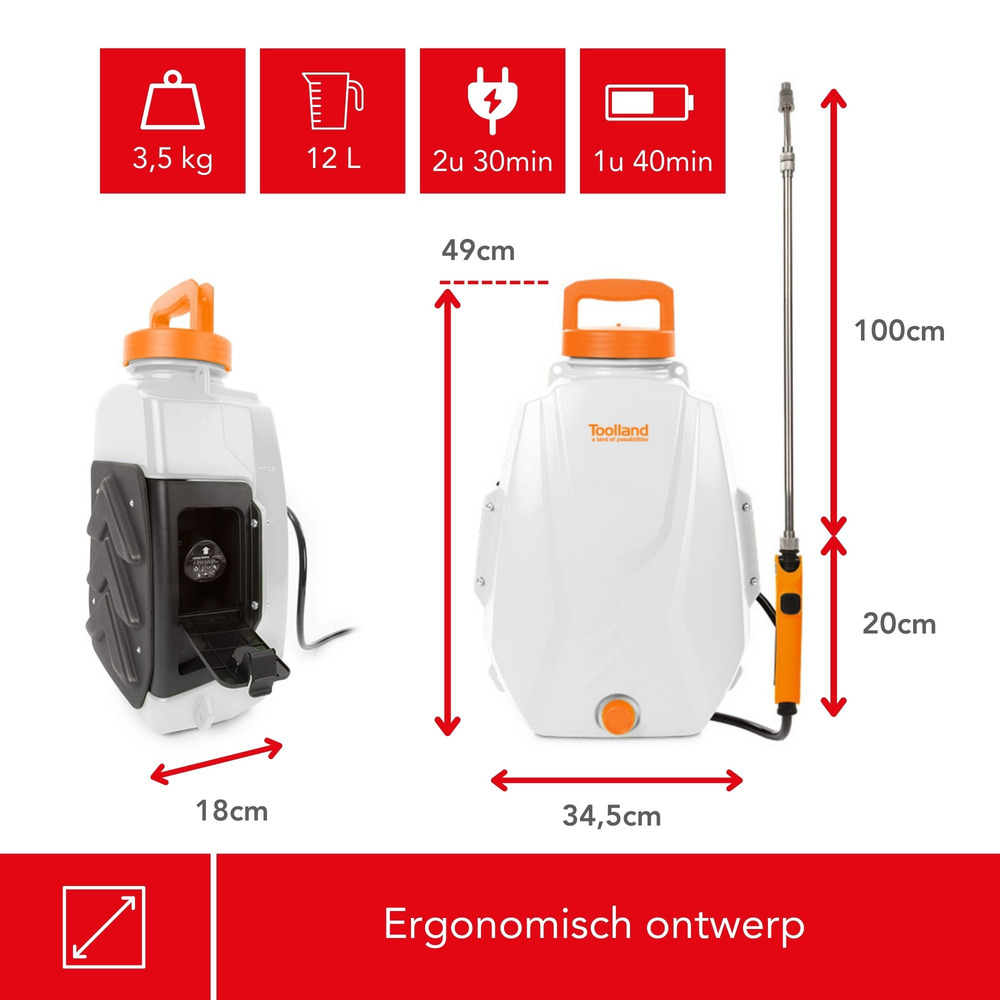 Experience efficient plant care with the innovative Rugsproeier, equipped with a powerful rechargeable battery and a spacious 12L capacity. This sprayer is engineered for optimal ease, eliminating the need for manual pumping.