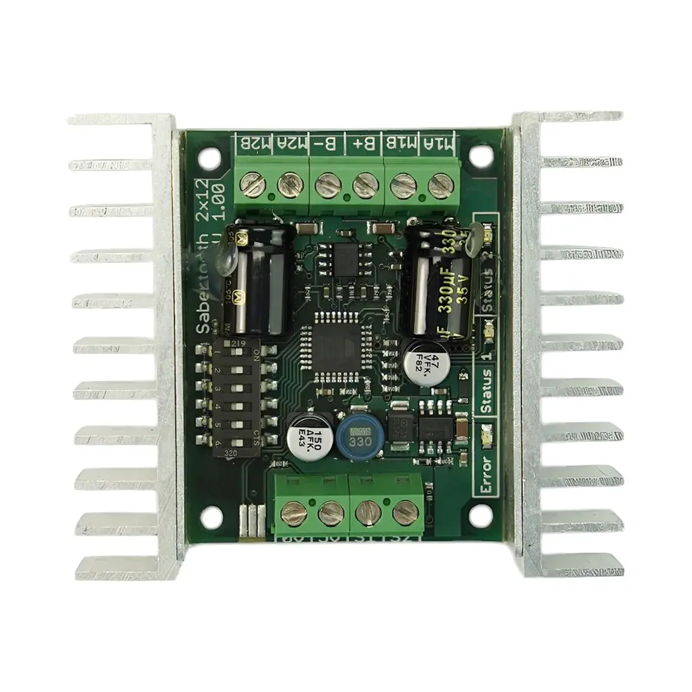 The Sabertooth 2X12 motor controller is a powerhouse of versatility and efficiency, designed to effortlessly drive your medium-sized robots into action. Capable of handling up to 30 pounds of combat weight or 100 pounds for general robotics, this dual motor driver is perfect for driving a range of robots with ease and precision.