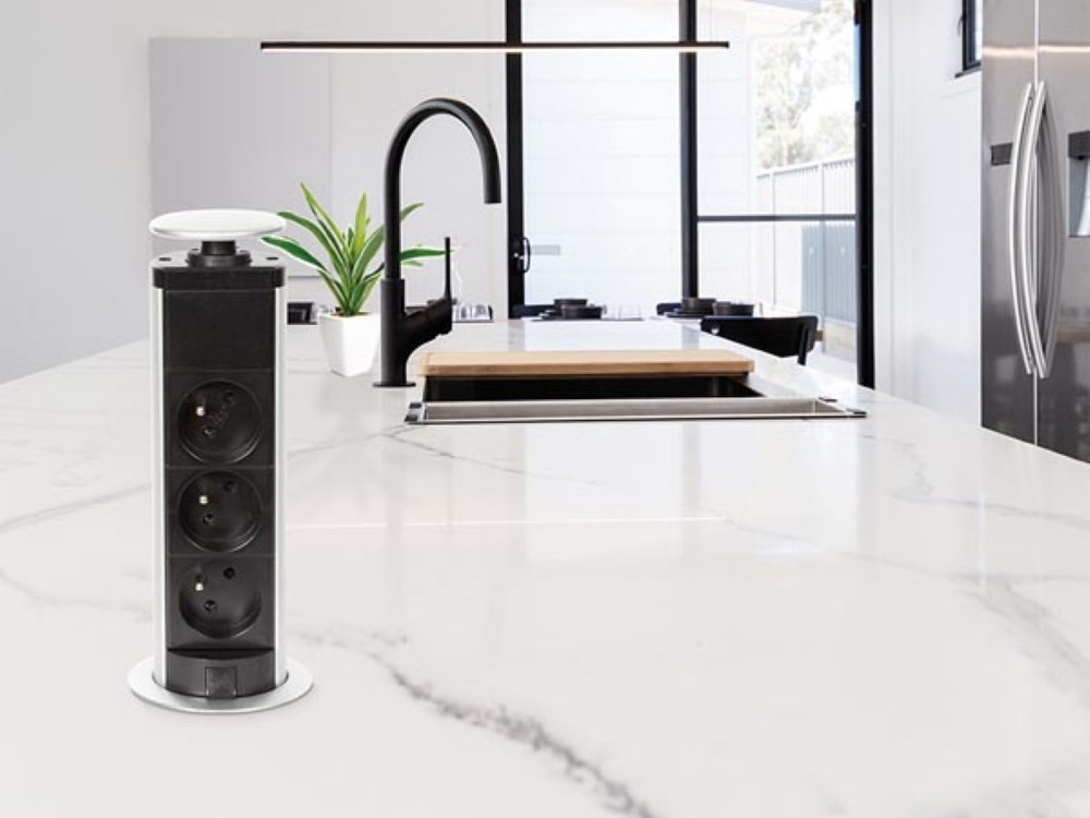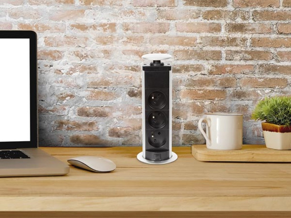 Ideal for kitchens, offices, and workshops, simply press to reveal the outlets, conveniently powering appliances or devices. The durable construction ensures safety and longevity, providing reliable energy access.