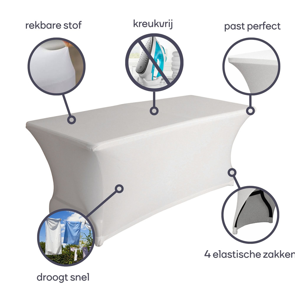 Transform your rectangular table into an elegant centerpiece with a sleek white stretch cover. Crafted from durable, high-quality fabric, it fits snugly over the edges and resists shifting. Perfect for banquets or everyday use, its stretchable material accommodates tables of varying lengths, providing a crisp, clean look.