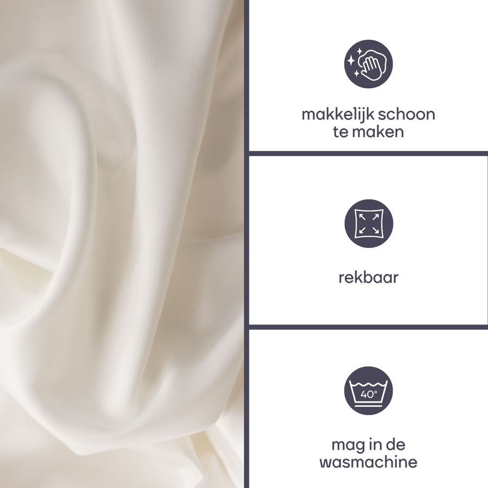 Benefits include a wrinkle-free appearance and protection from spills and scratches. Usage spans from formal dinner settings to casual gatherings. The cover is machine washable, ensuring easy maintenance while retaining its pristine condition through multiple uses.