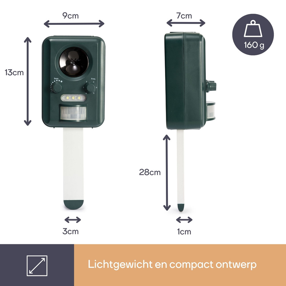 Emitting variable frequencies, the device disrupts pests' communication and navigation, safeguarding your garden from intruders like rodents and insects. Rainproof and durable, it functions seamlessly in all weather conditions. Simply stake it into the ground and enjoy pest-free tranquility.