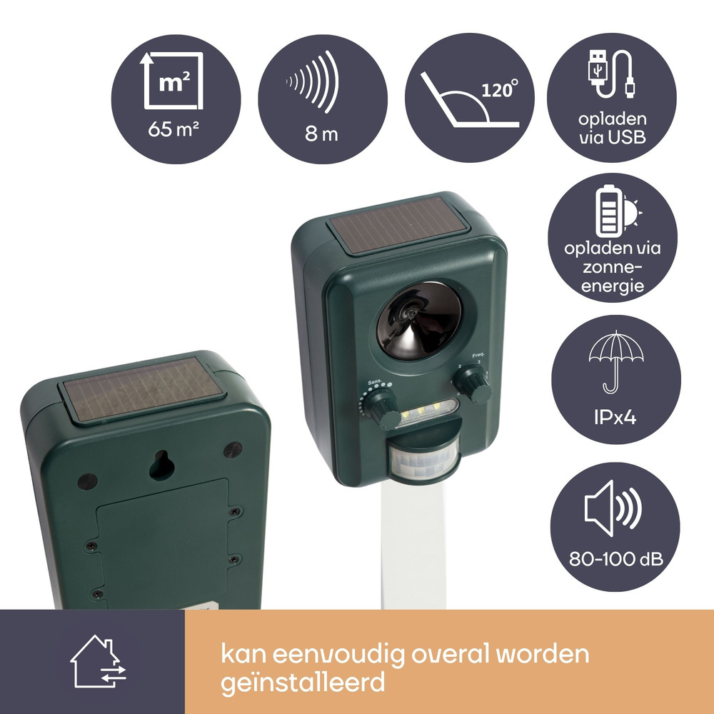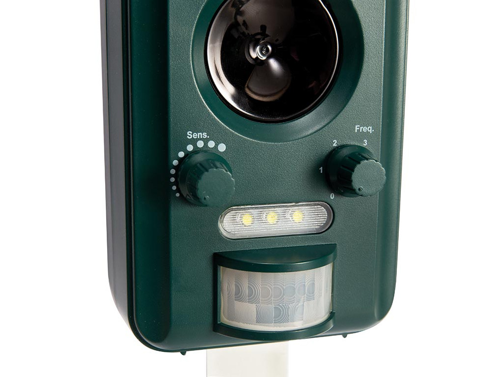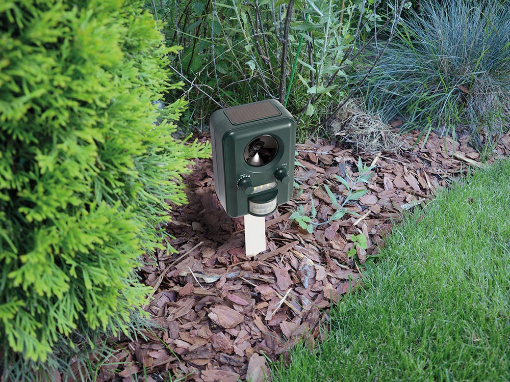 This innovative, solar-powered ultrasonic pest repeller keeps unwanted visitors at bay using advanced sound wave technology.