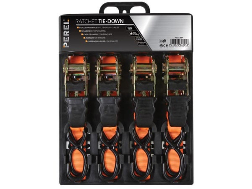 Constructed from high-strength materials, it features a 25 mm width and extends up to 5 meters in length, ensuring versatile application for any load size. The heavy-duty ratchet mechanism ensures a firm and adjustable hold, even under strenuous conditions.