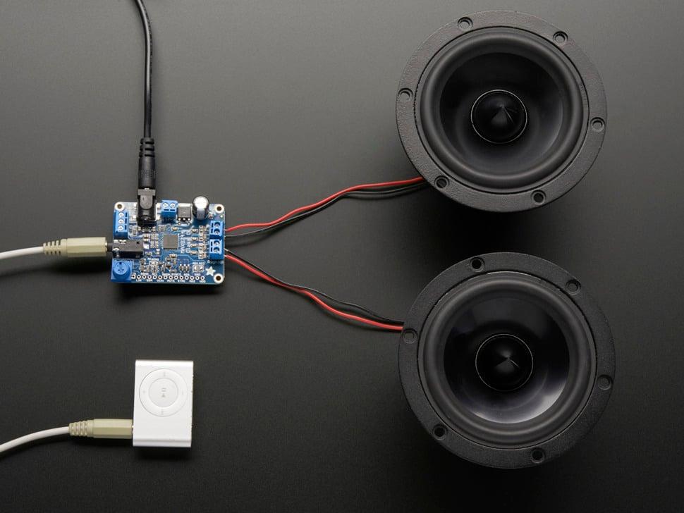 Pump up the volume with this 20W stereo amplifier! This slim little board features a class D amplifier capable of driving 2 channels of 4-8 ohm impedance speakers at 20W each.