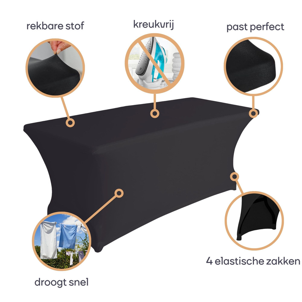 Transform your rectangular table with our stretchable black cover, crafted to offer a snug fit for various table dimensions. Durable and flexible, it elegantly enhances dining settings or conference rooms.