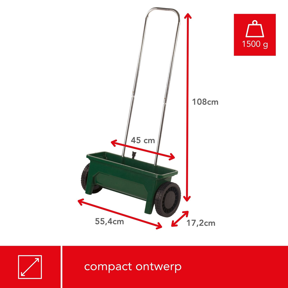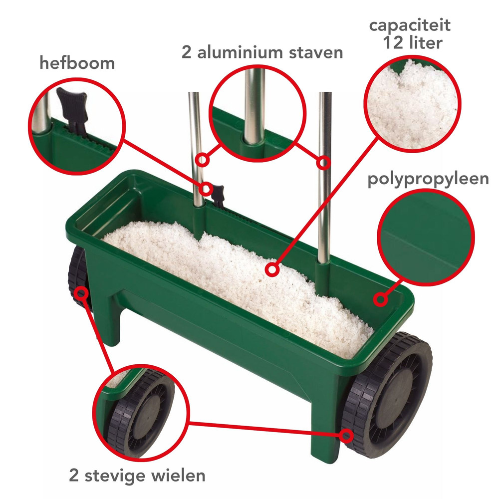 The STROOIWAGEN offers precise application with its 45 cm width, ensuring efficient coverage in every sweep. With a 12 L volume, it manages large areas effortlessly, reducing the need for frequent refills.