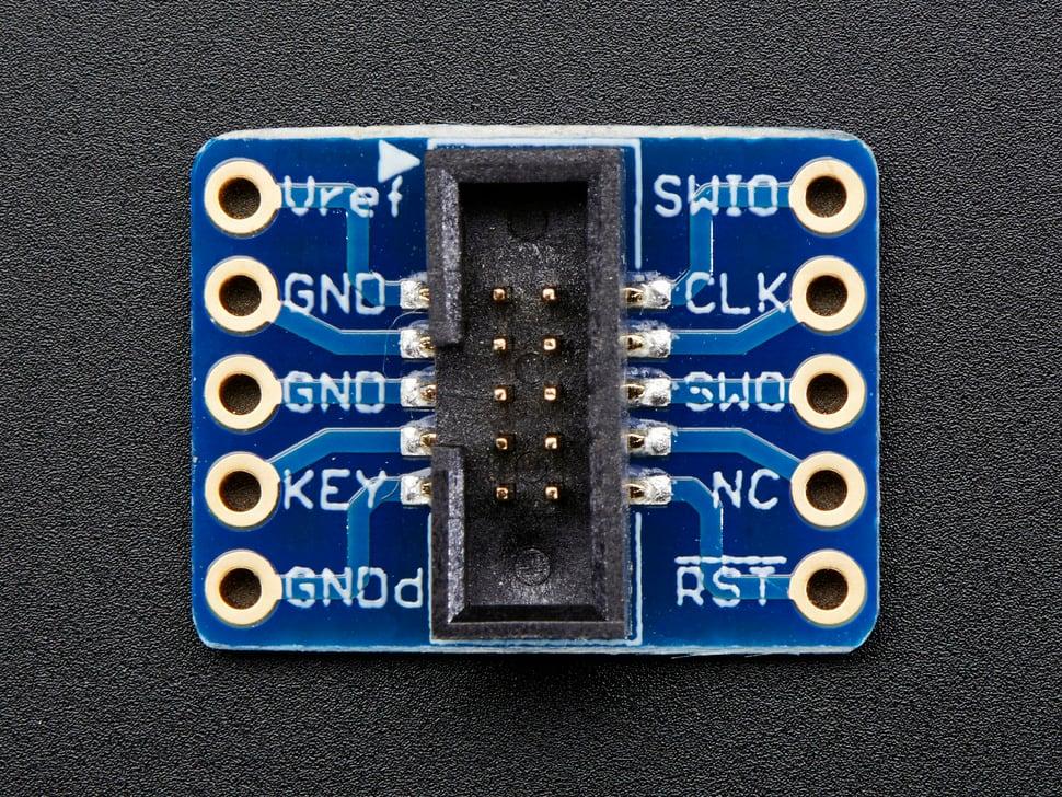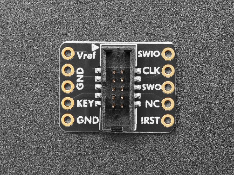This adapter board streamlines the integration of ARM dev boards by providing compatibility with the slimmer 2x5 (0.05"/1.27mm pitch) SWD cables. Perfect for connecting tools like the JTAGulator, STLink, or SEGGER J-Link to miniature boards using the 10-pin SWD programming connector.