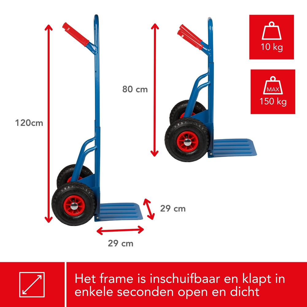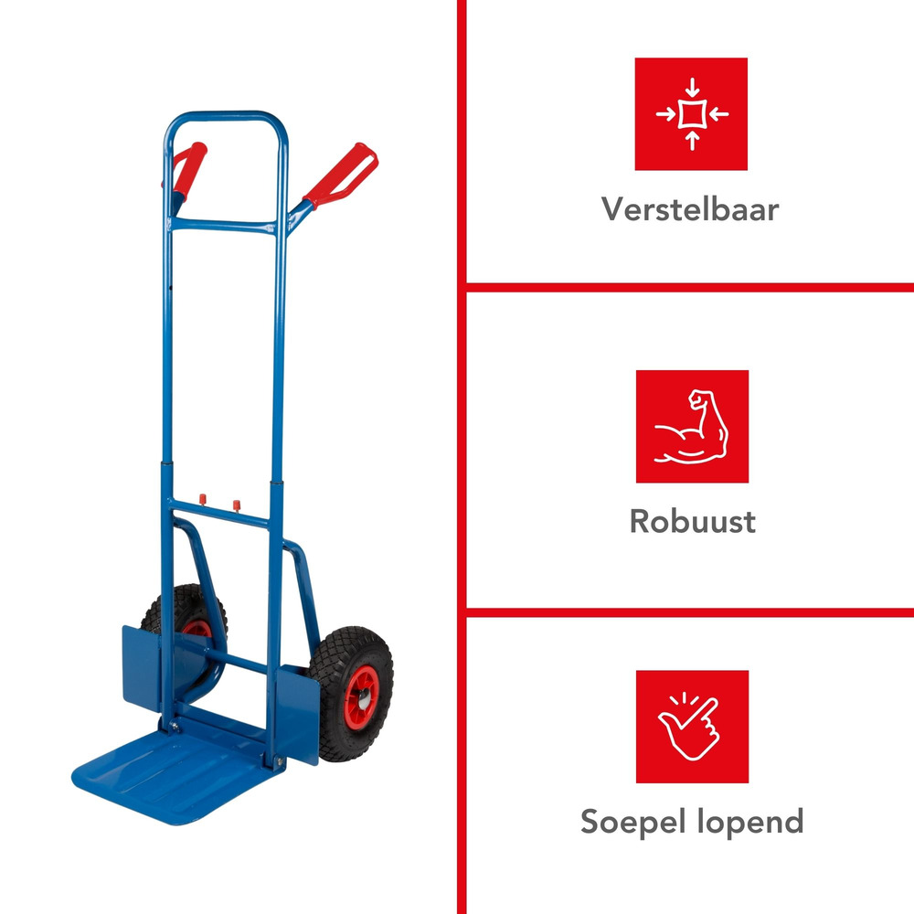 Perfect for moving boxes in a warehouse or relocating furniture at home, this hand trolley offers versatility through its compact storage. The non-slip rubberized wheels provide stability on various surfaces, from tiles to rugged pavements.