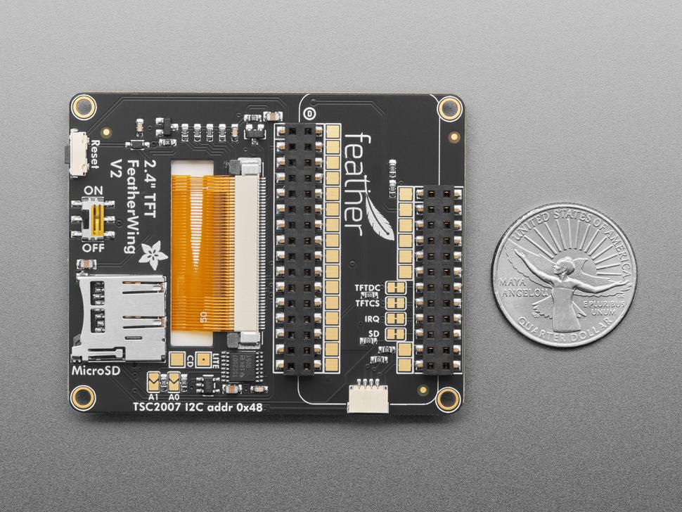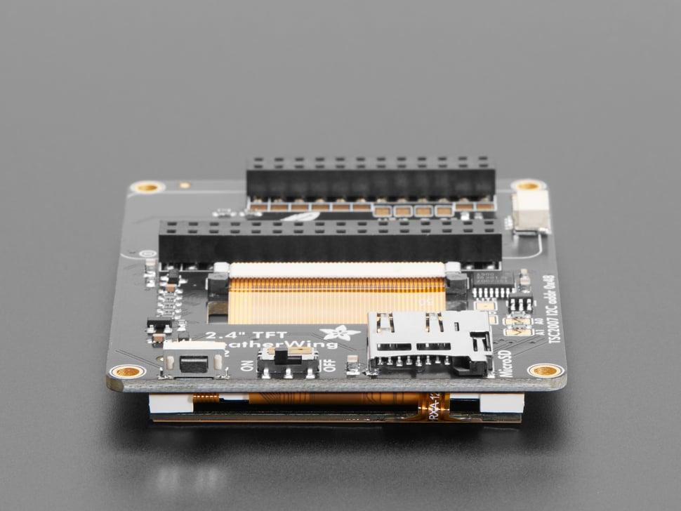 A versatile 2.4" touchscreen display shield with a microSD card socket elevates any Feather project. The TFT exhibit boasts a 240x320 pixel resolution, providing vibrant 16-bit color control, surpassing standard monochrome displays.