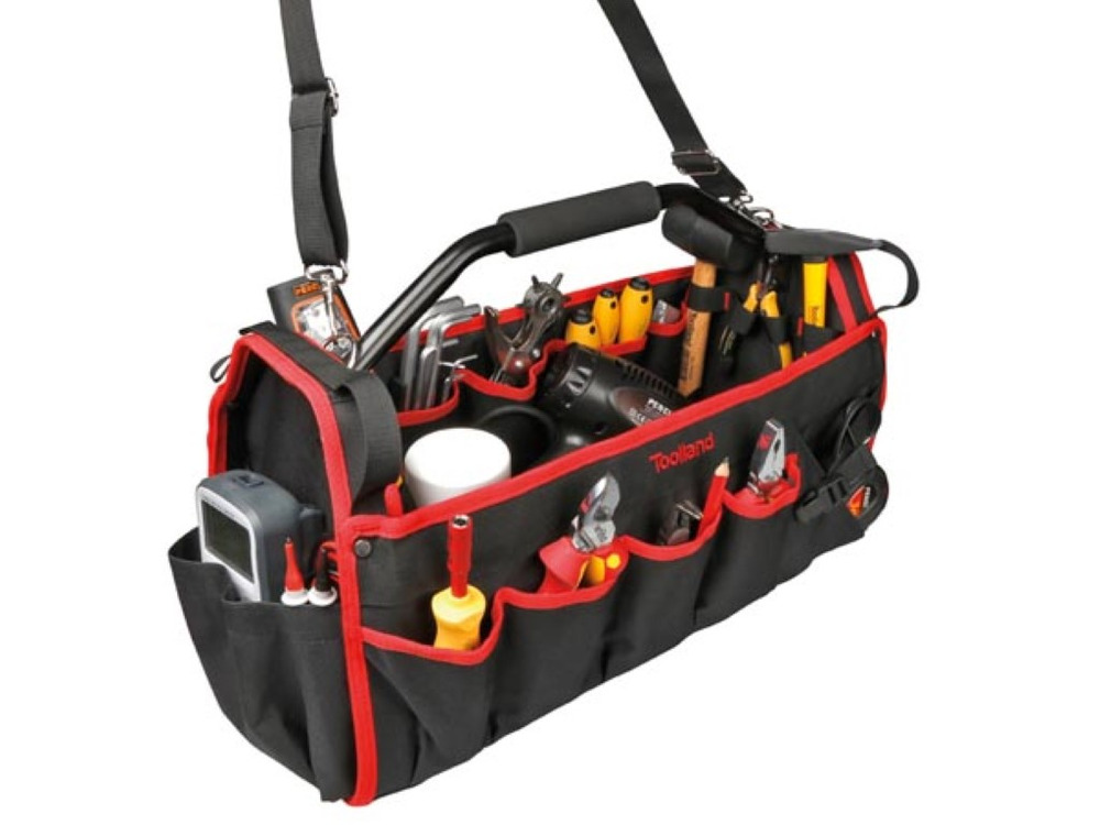 Deze Toolland gereedschapstas van 50 x 24 x 33 cm biedt een efficiënte manier om je gereedschap te organiseren en mee te nemen. Met 18 compartimenten kun je gemakkelijk al je tools gesorteerd houden.