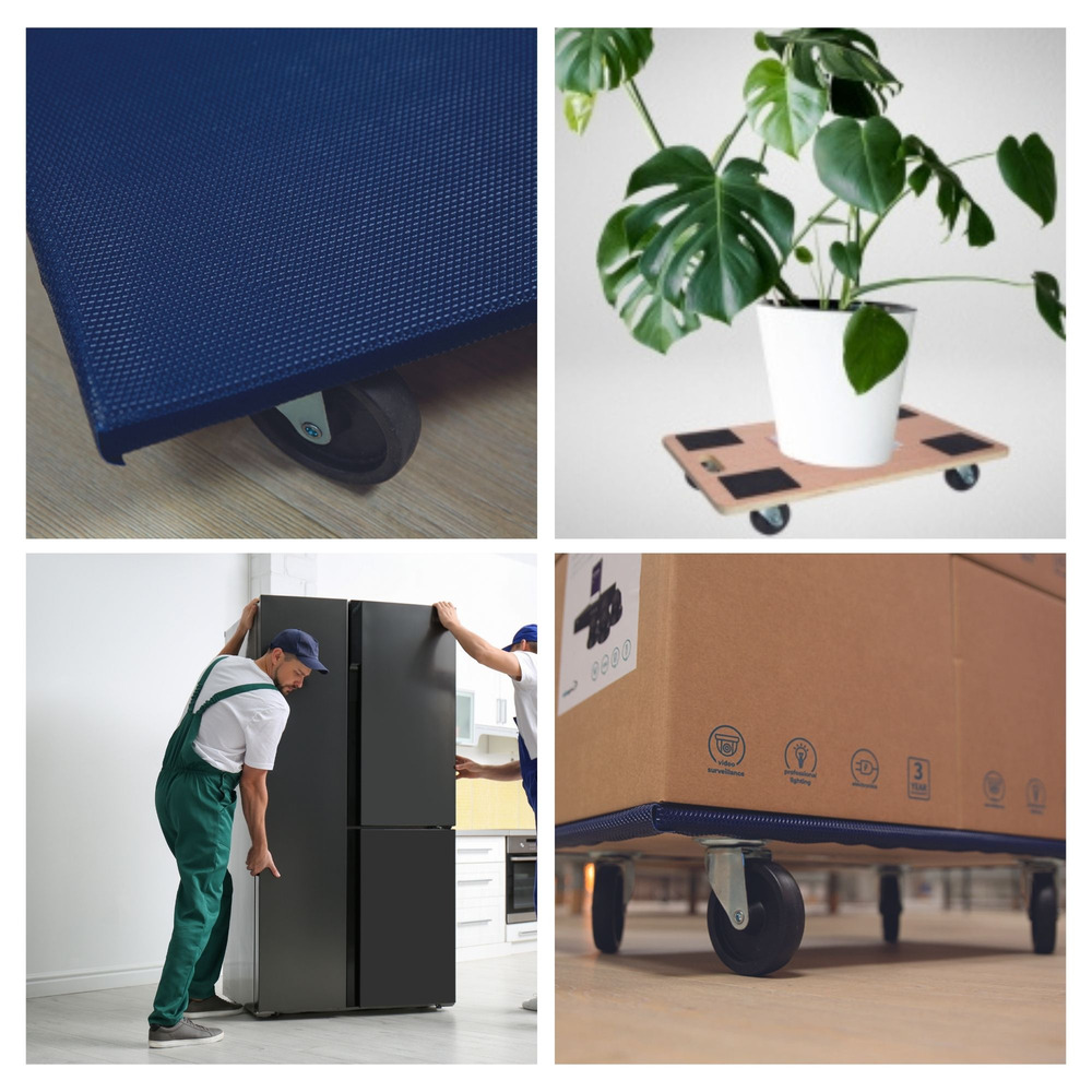 Met vier zwenkwieltjes draait en keert de meubelroller moeiteloos in elke gewenste richting. Dit functionele gereedschap voegt efficiënte mobiliteit toe aan je verhuis- of herinrichtingsprojecten, vergelijkbaar met de soepelheid van een winkelwagen maar met de kracht om zware goederen te hanteren.
