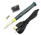 This USB soldering iron is ideal for some fast soldering work (wires, small components), for desoldering or soldering material that conducts the heat well, this soldering iron is less suitable. When the soldering iron is plugged in, the button on the housing must be touched to activate it, after which it is heated up within 15 seconds. After 30 seconds, the soldering iron automatically switches off when this button is no longer touched, and the soldering iron cools down within 25 seconds.