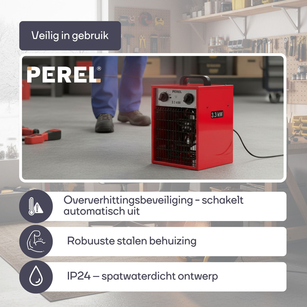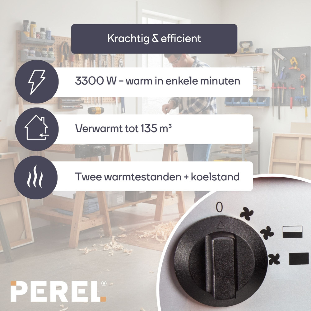 Experience rapid warmth with the Ventilatorkachel, offering an impressive 3300 W of power, perfect for quickly heating any indoor space. Its robust design ensures efficiency, making it your dependable companion during colder months.