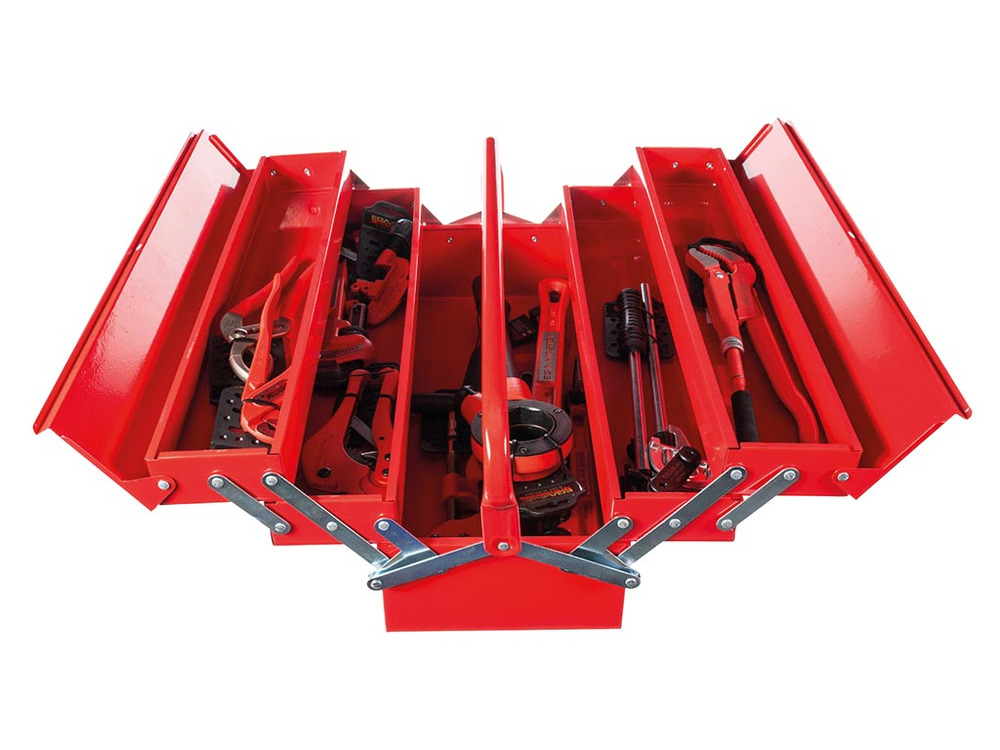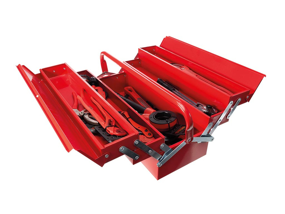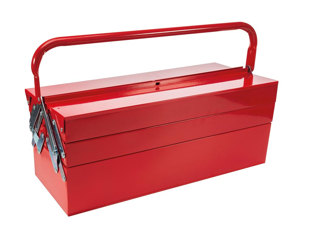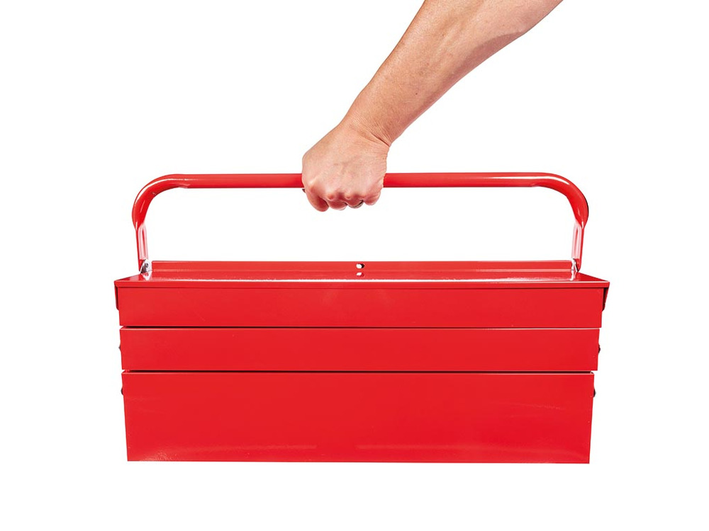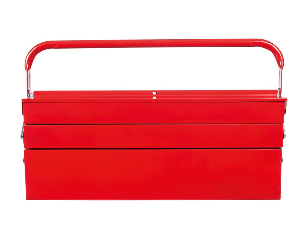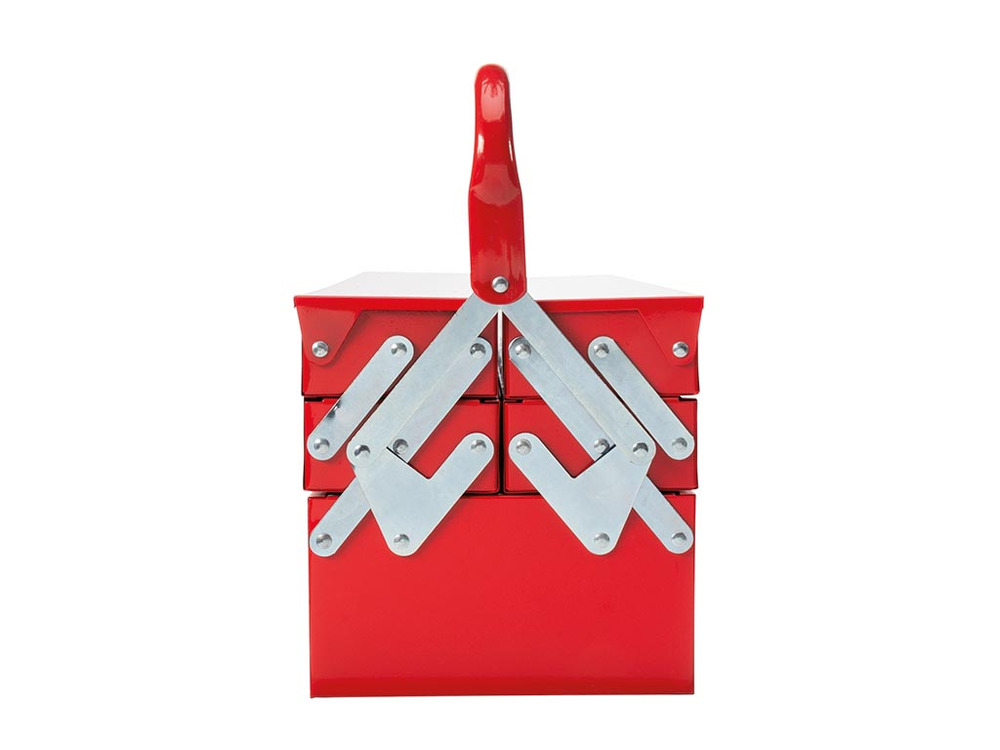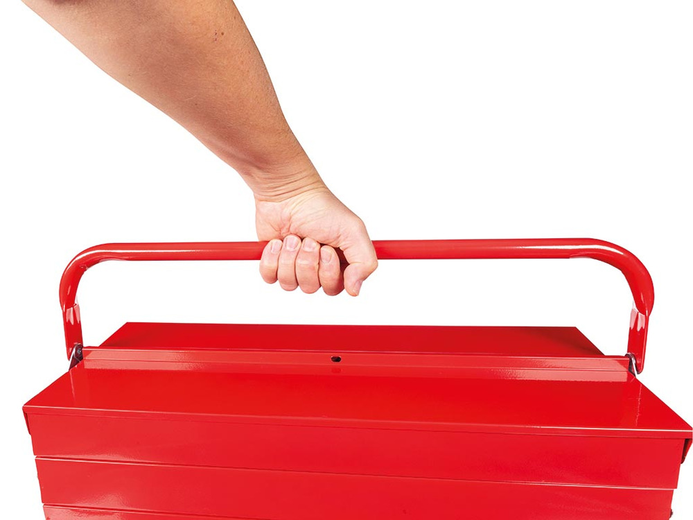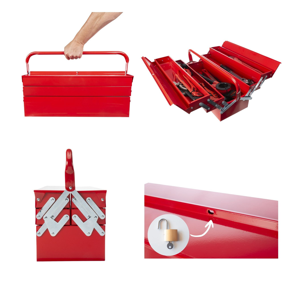 Constructed from robust metal, this versatile toolbox from Toolland unfolds into five accessible compartments, providing seamless storage for all your essentials. Its design ensures durability, securing your tools and enhancing portability.