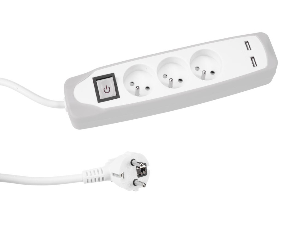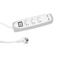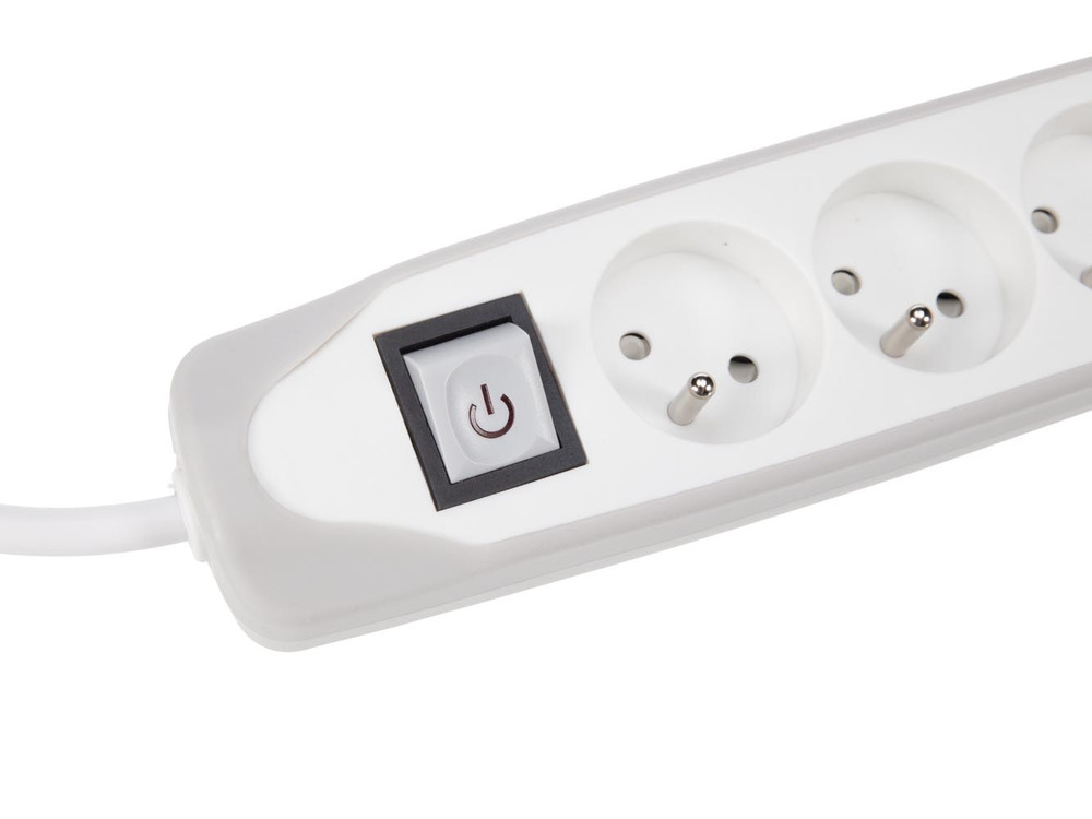 This versatile 3-socket power strip features an integrated switch for easy control, offering convenience and safety in one compact design. With its sophisticated grey and white finish, it complements any modern environment.