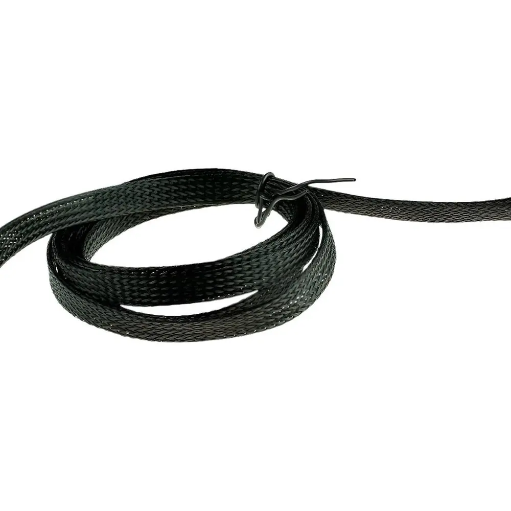 Imagine a world where cluttered cables become a thing of the past with this versatile black braided cable guide. Its unique, expandable design offers the ability to compress, allowing you to snugly fit more cables within its resilient weave. This means no more tangled chaos beside your entertainment center or beneath your work desk. The braided structure not only manages your cables but also adds a touch of sophistication to your setup, transforming a jumble of wires into a neatly organized system.