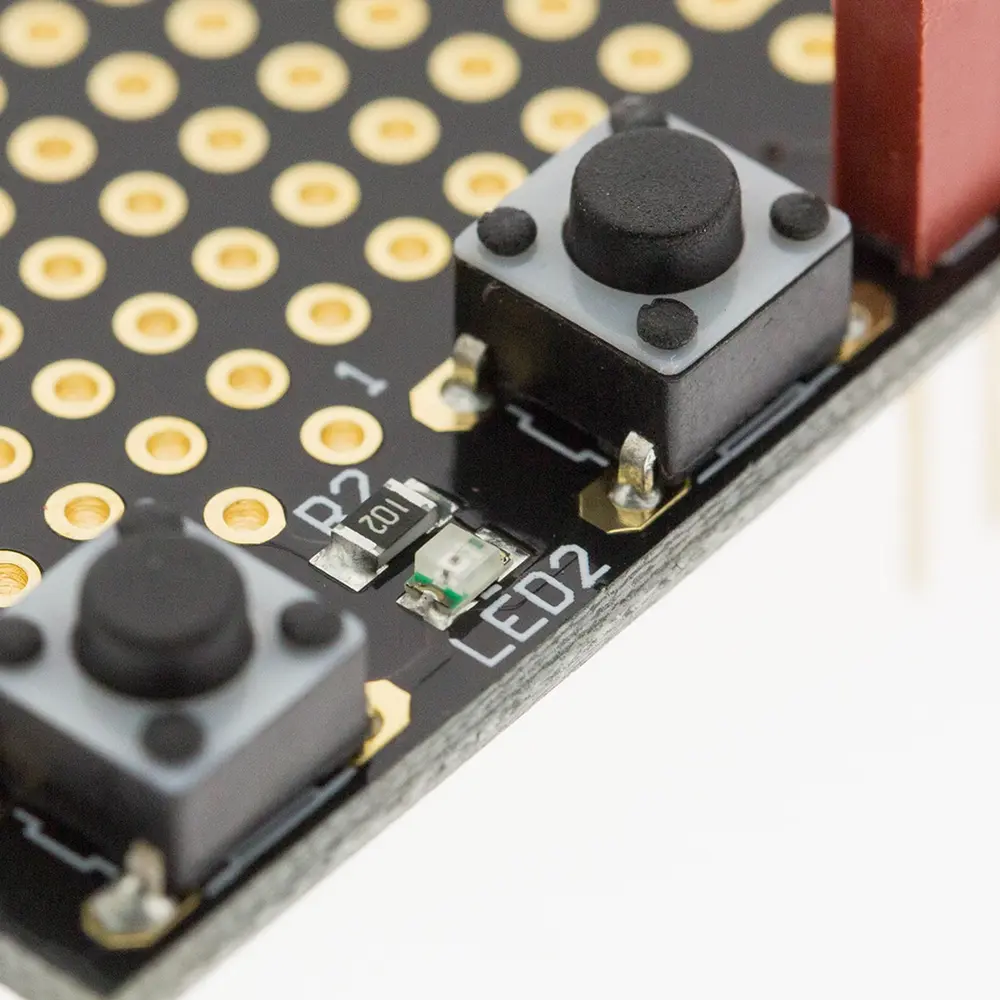 The shield's working area includes a DIP prototyping section, perfect for accommodating chips, while its SOIC prototyping area above the USB jack can support up to 14-pin SOIC chips, whether they're of narrow, medium, or wide packages. This means regardless of your component's configuration, the shield has got you covered. Picture this as a tailor’s workspace with slots for every thread, ensuring precision and adaptability for any project you embark upon.