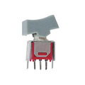 The VERTICALE SUBMINIATUUR ROCKERSCHAKELAAR is engineered for precision with an SPDT ON-ON configuration, offering reliable circuit switching for compact electronic devices.