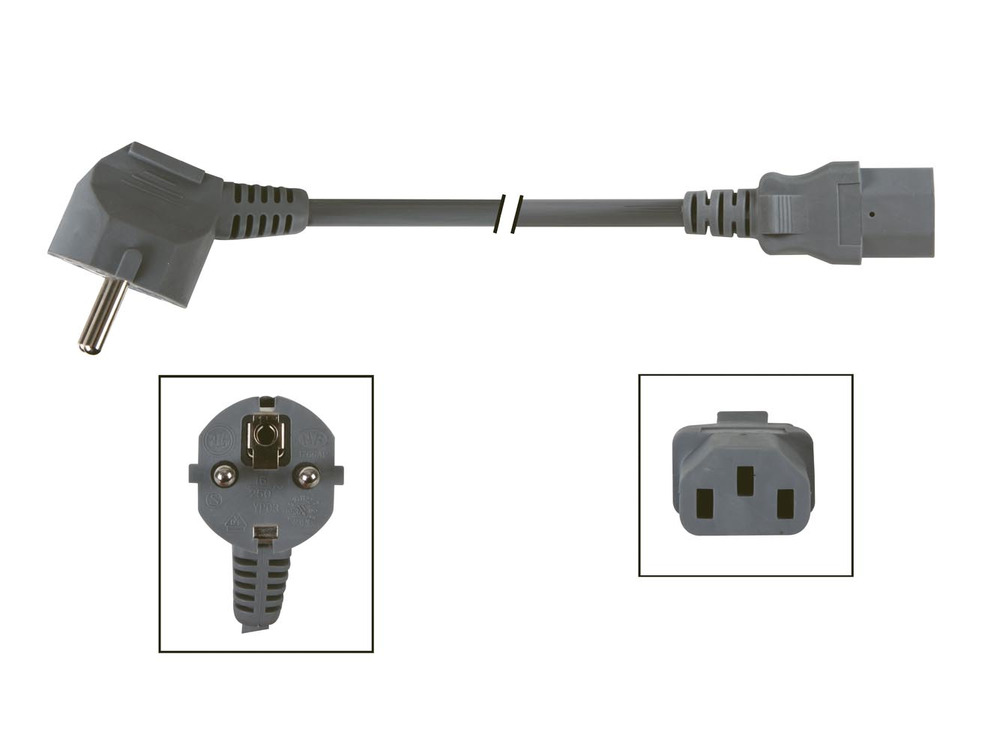 The VOEDINGSKABEL ZWART CEE 7/7 90°+ C13 ensures seamless connectivity with its durable 2-meter length and robust construction.