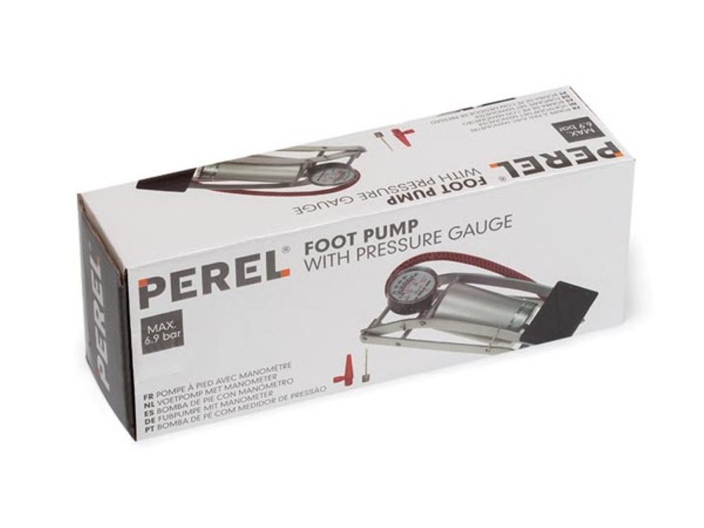 Experience precise tire maintenance with the Voetpomp met Manometer. This robust foot pump includes a built-in pressure gauge for easy monitoring, ensuring optimal performance every time.