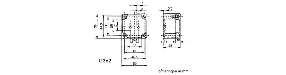 The water-resistant ABS housing in dark grey measures 52 x 50 x 35mm. Crafted from impact-resistant ABS material, it withstands temperatures ranging from -20°C to +100°C.