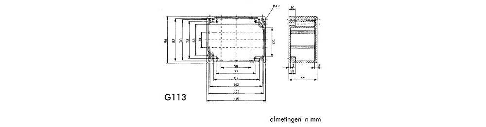 Het deksel heeft een verzonken neopreen dichting die extra beveiliging biedt. De G100-reeks beschikt over studs aan de binnenkant van de bodemplaat, ideaal voor horizontale PCB-montage of voor aardingaansluiting. Bovendien zijn er sleuven voor de verticale montage van PCB's.