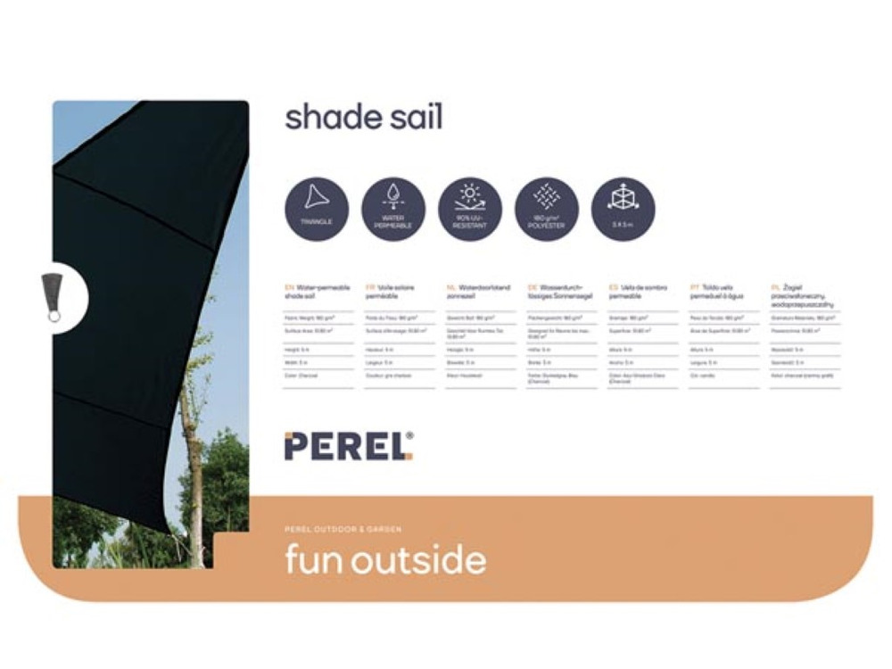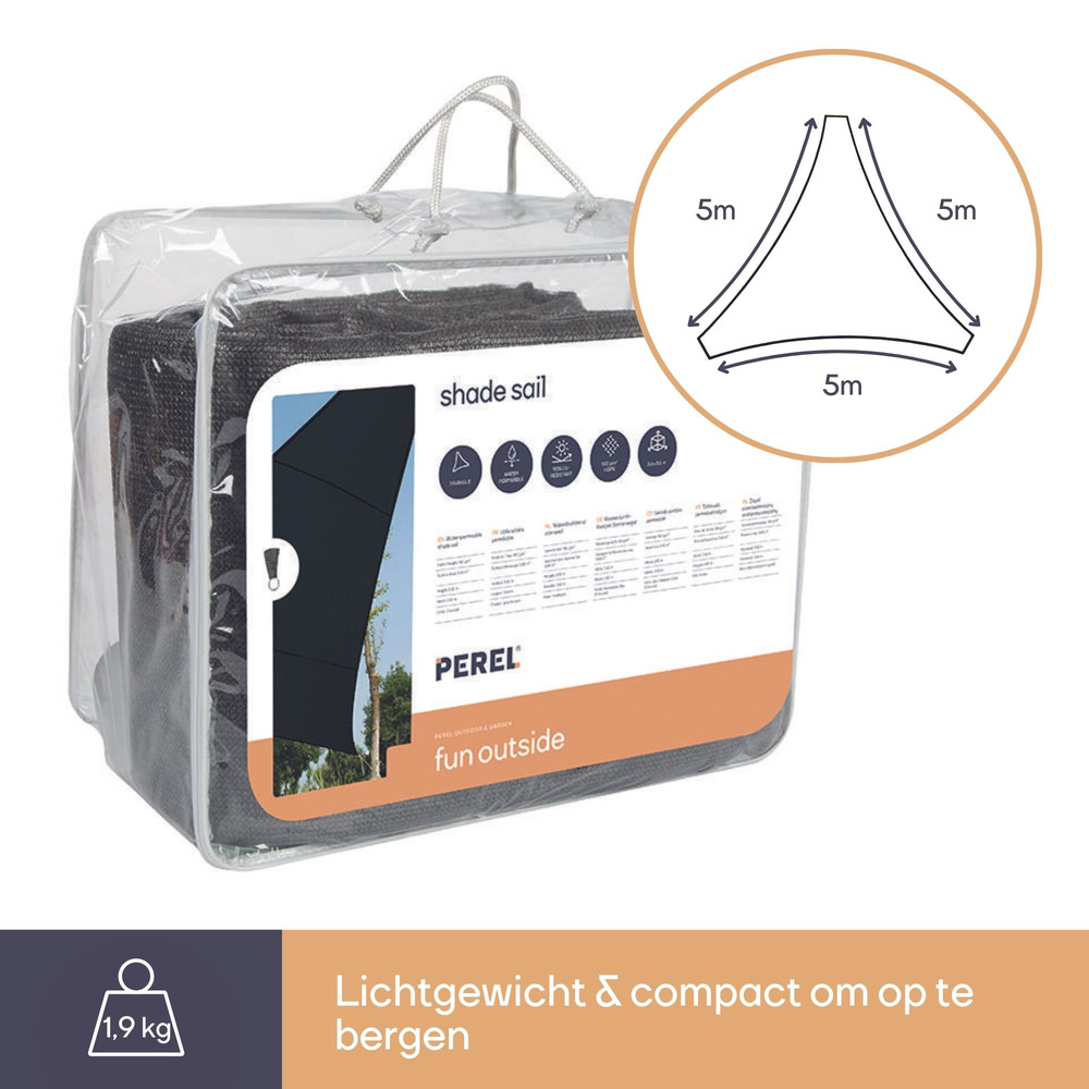 Transform your outdoor space with the Waterdoorlatend Zonnezeil, a versatile, water-permeable sun sail in a sleek 5 x 5 x 5 meter triangular design. Its elegant anthracite hue complements any exterior decor, providing both style and functionality.