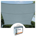 The ZONNEZEIL rectangle sail measures 4 x 3 meters and comes in a subtle light gray color, perfectly blending style and functionality for your outdoor space.