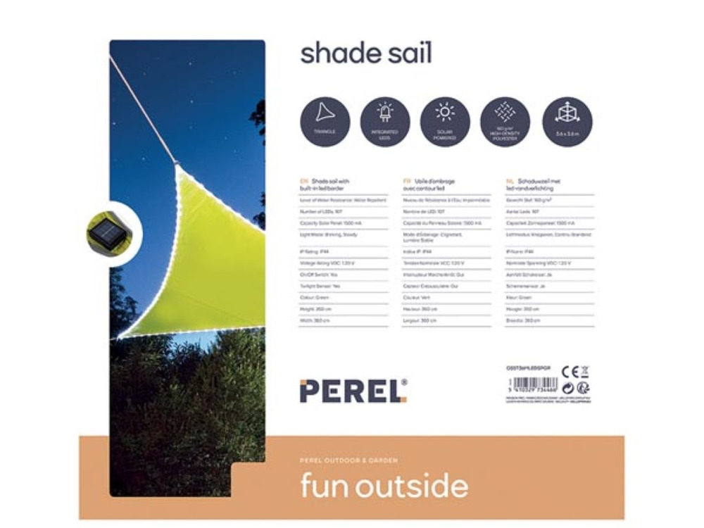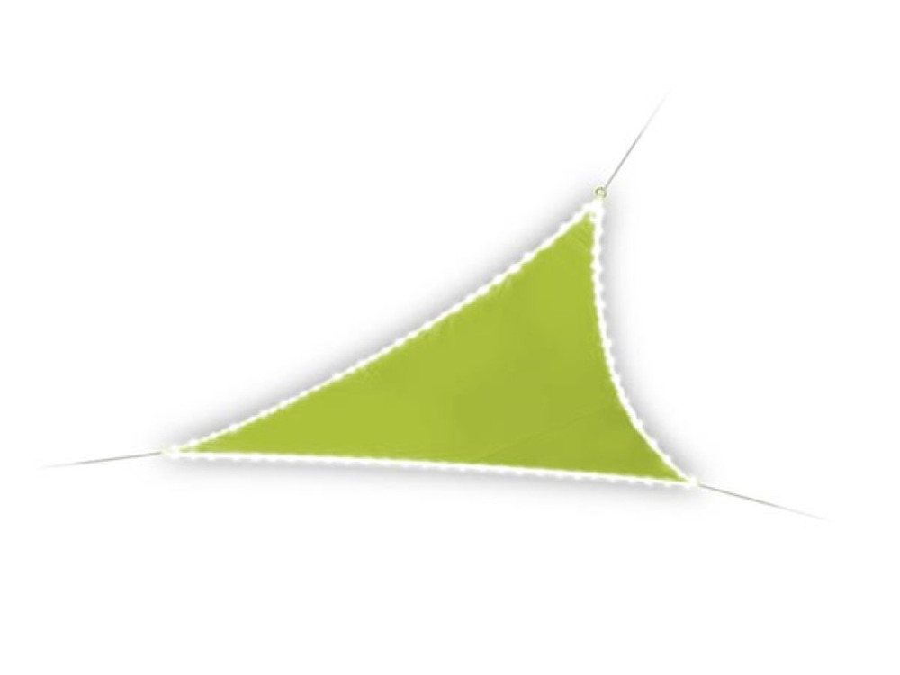 The Zonnezeil met LED-randverlichting in lime green is a sleek solution for your outdoor space. Its equilateral triangle design, measuring 3.6 meters on each side, ensures both style and functionality.