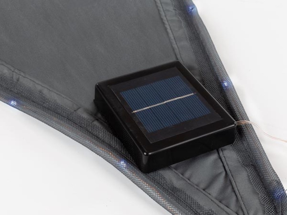 Constructed from durable, weather-resistant fabric, it provides efficient UV protection, making it ideal for sunny days. The integrated LED edge lighting offers ambient illumination, perfect for evening gatherings or late-night relaxation.