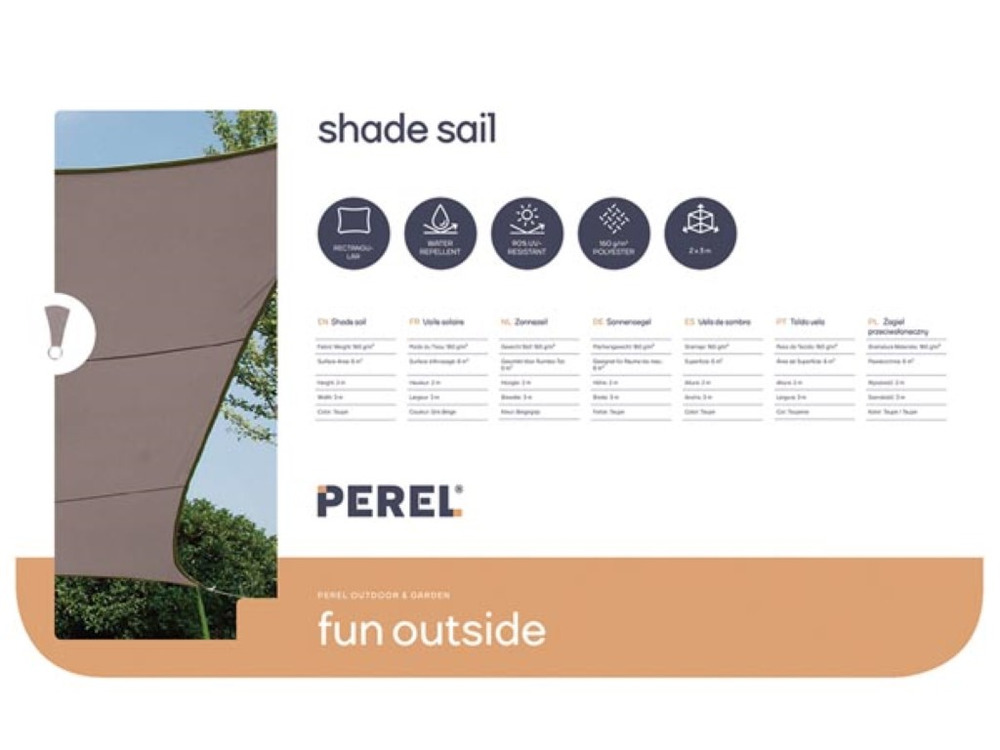 The Zonnezeil Rechthoek 2 x 3 m in Taupe transforms your outdoor space into a cozy and shaded retreat. Crafted from high-quality, UV-resistant fabric, it effectively blocks harmful sun rays while allowing air circulation.