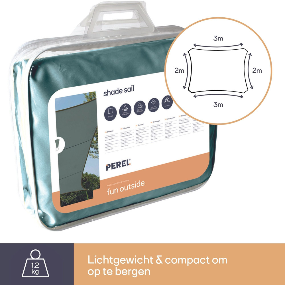 Transform your outdoor space with the ZONNEZEIL rechthoekig van 2 x 3 m in een stijlvolle groengrijze kleur. Deze zonwering biedt een perfecte schaduwoplossing voor zonnige dagen en beschermt tegen schadelijke UV-stralen.