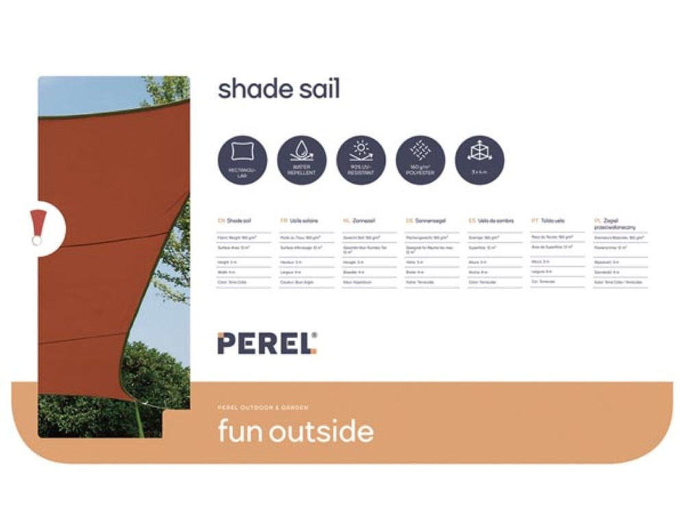 Elevate your outdoor space with the Zonnezeil, a versatile rectangular shade sail measuring 4 x 3 meters in a vibrant terracotta color. Designed to protect against harmful UV rays, this functional component provides a stylish and practical solution for sun-soaked areas.