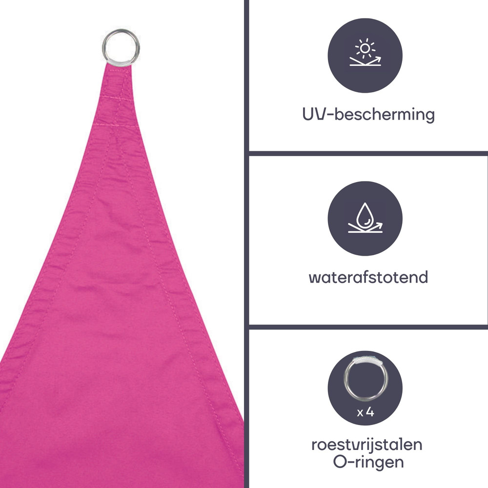 Experience ultimate sun protection with the Zonnezeil in vibrant fuchsia. Measuring 2 x 3 meters, this rectangular shade sail offers ample coverage, perfect for patios and gardens.