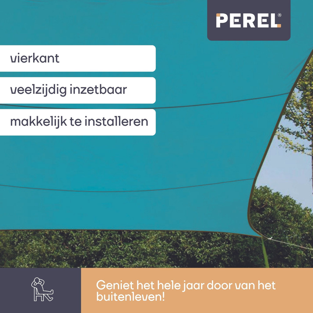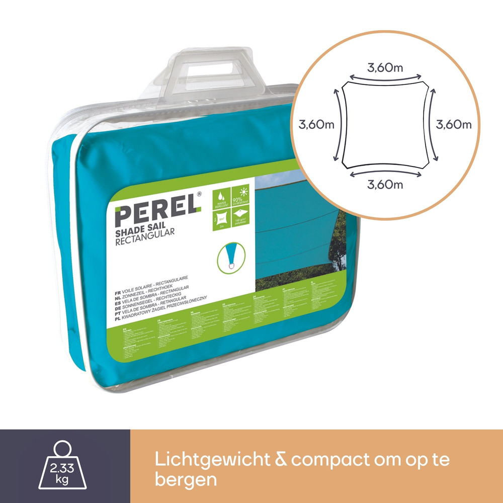 Experience the ultimate in outdoor comfort with the ZONNEZEIL - VIERKANT - 3.6 x 3.6 m in vibrant sky blue. This sunshade is an efficient barrier against heat and harmful UV rays, safeguarding your pool or patio.